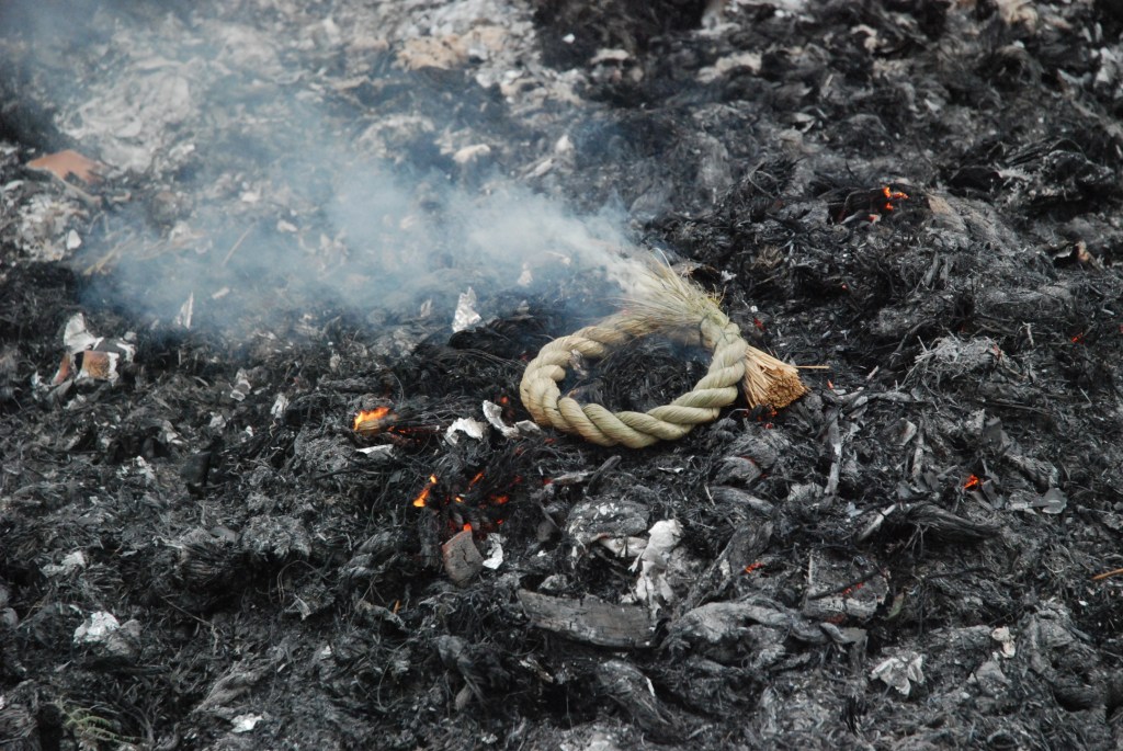 とんどの火にファンチャーナを彩ってくれたしめ縄が