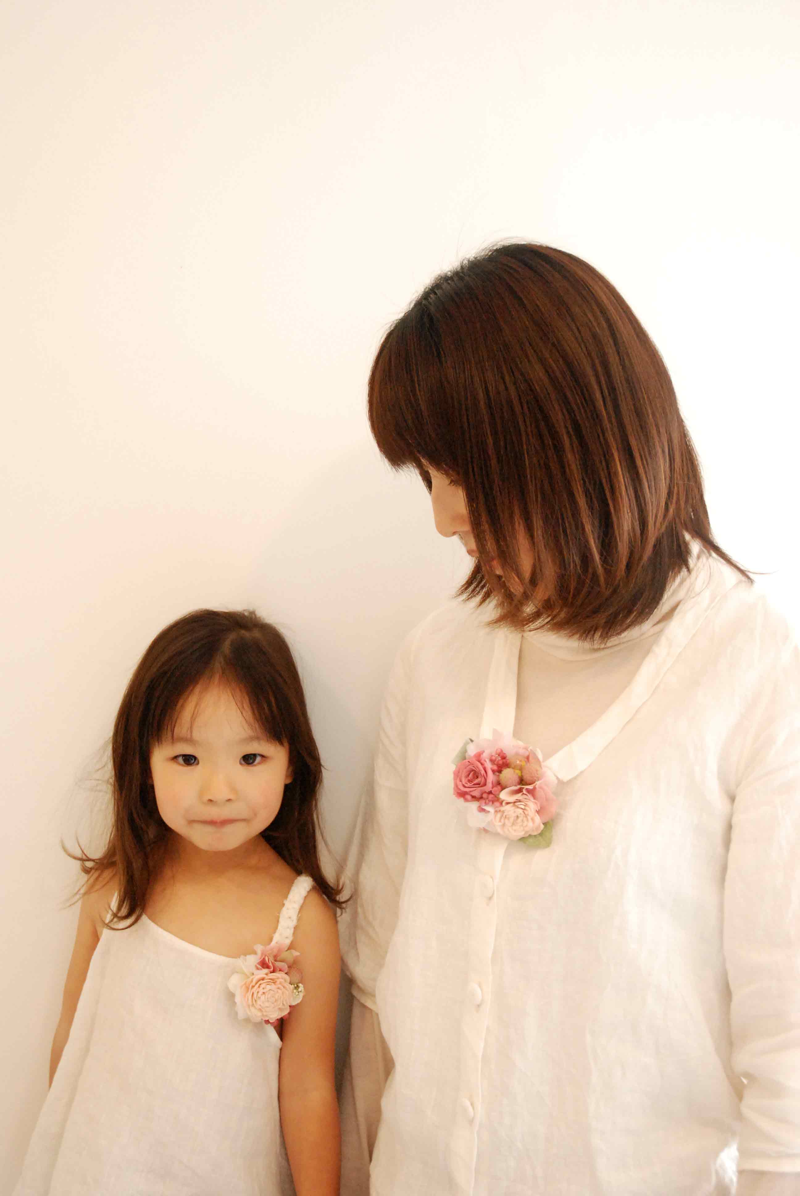 洋服の素材感とvert de grisさんのプリザーブドフラワー・コサージュが