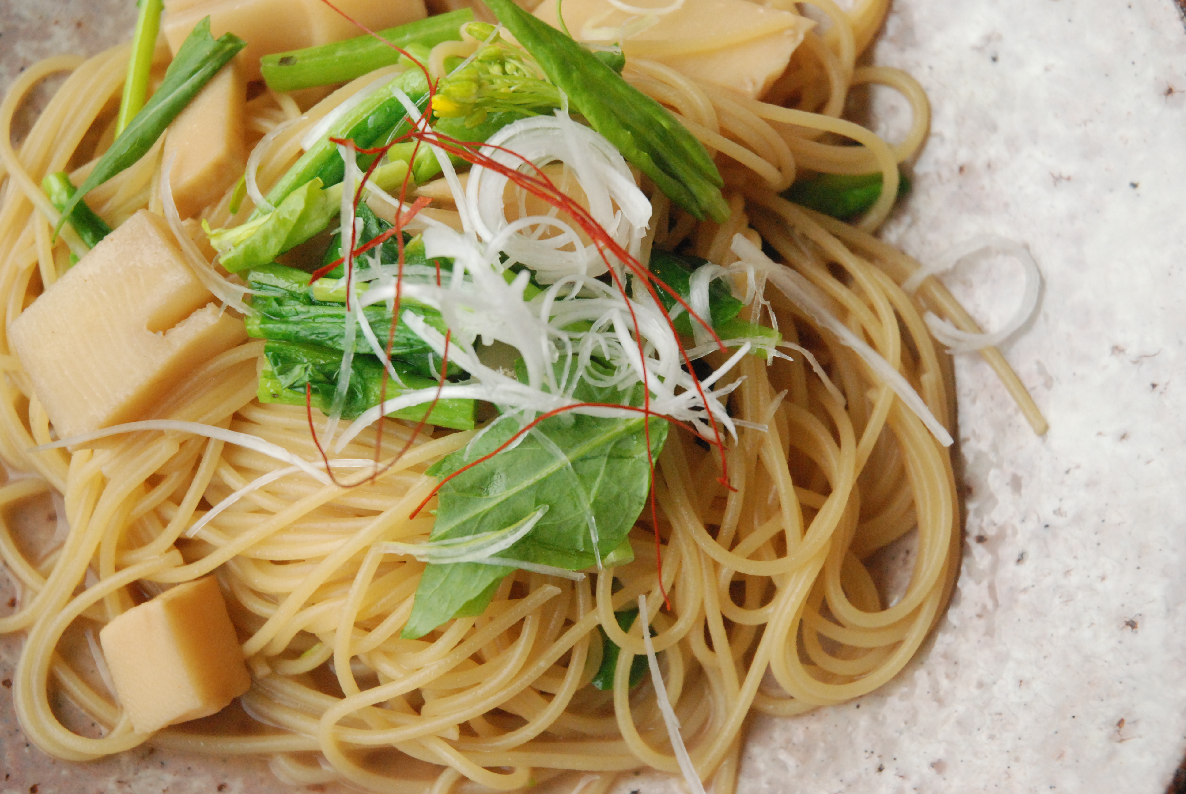 上に載っているのは白髪ねぎと糸唐辛子です。