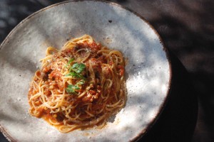牛ほほ肉のラグーソースパスタを召し上がって、お酒も進み