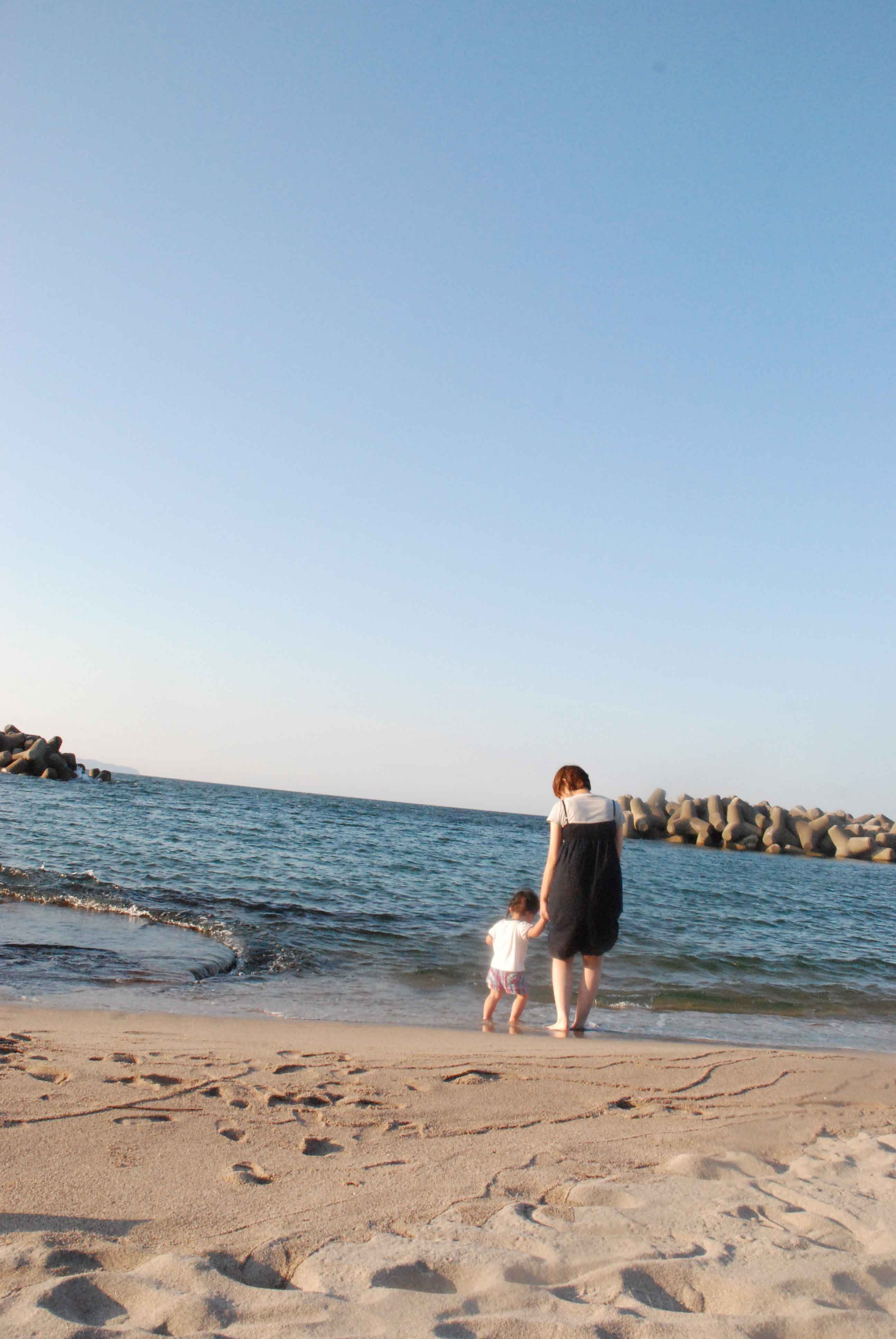 初めて海水に足を浸すもうすぐ2歳の娘は