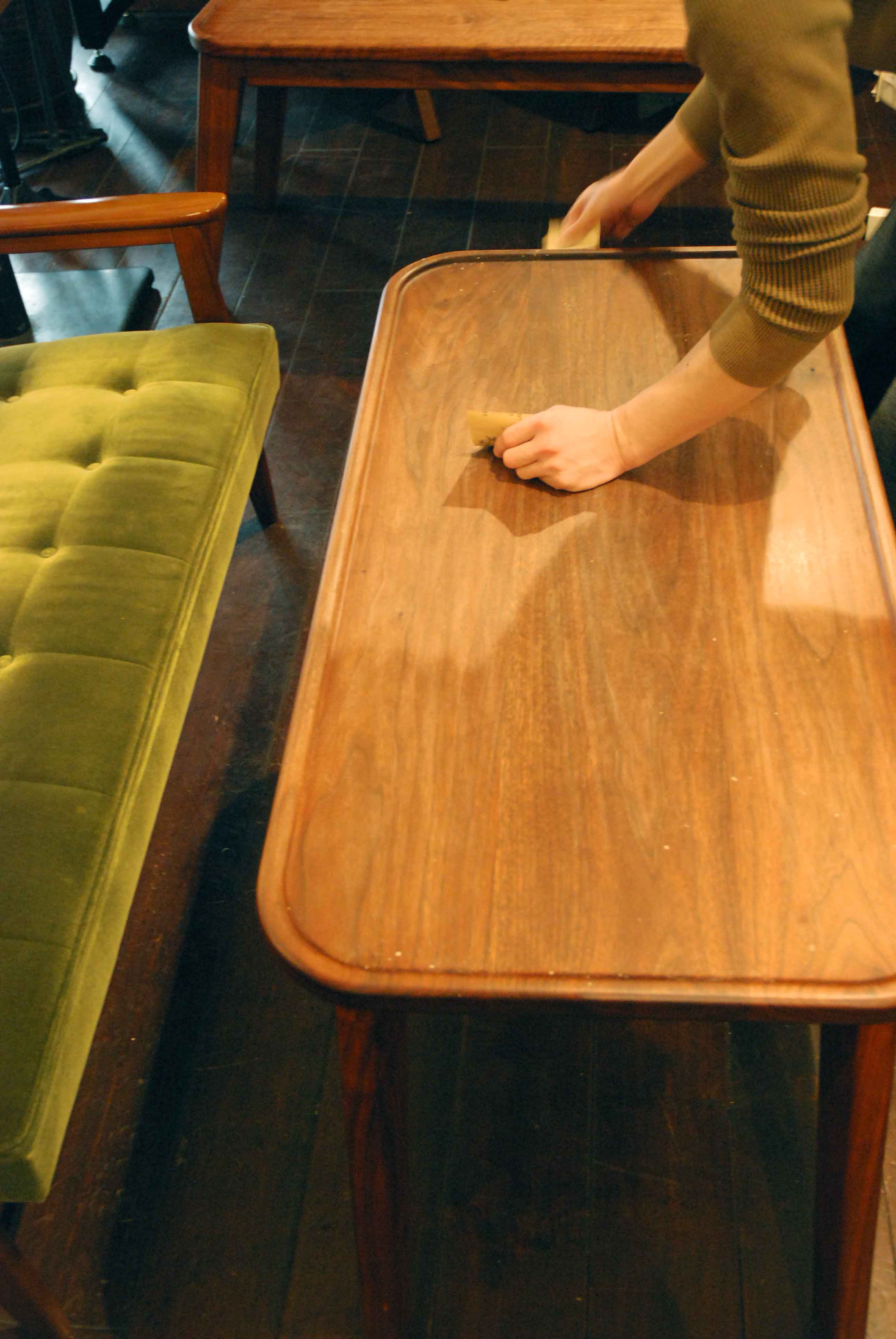 マスターはテーブルをメンテナンス中。