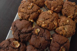 ダークチョコレートの上品な甘みとさくさくくるみがおいしいチョコ&くるみのマフィン。