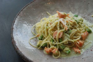 →アボガドとサーモンのクリームソース