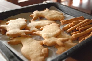 さくさくのタルト生地を使って焼いたうさぎクッキーとバー。