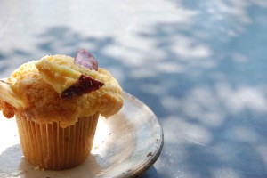 メープルシロップとともに生地に練りこんでマフィンに焼き上げました。