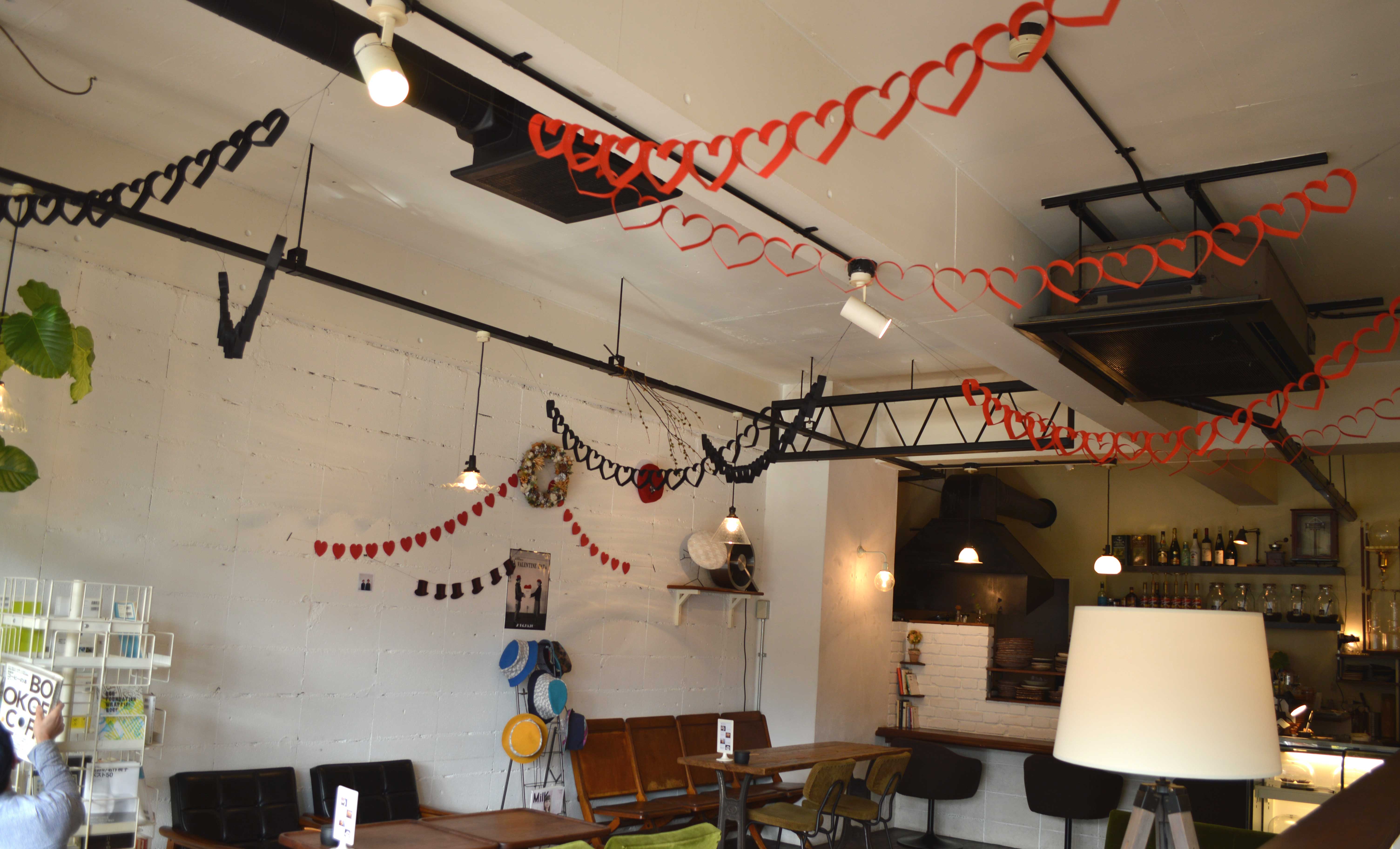 店内の沢山のハートは彼女がカフェジャックしてくれたものなのです。