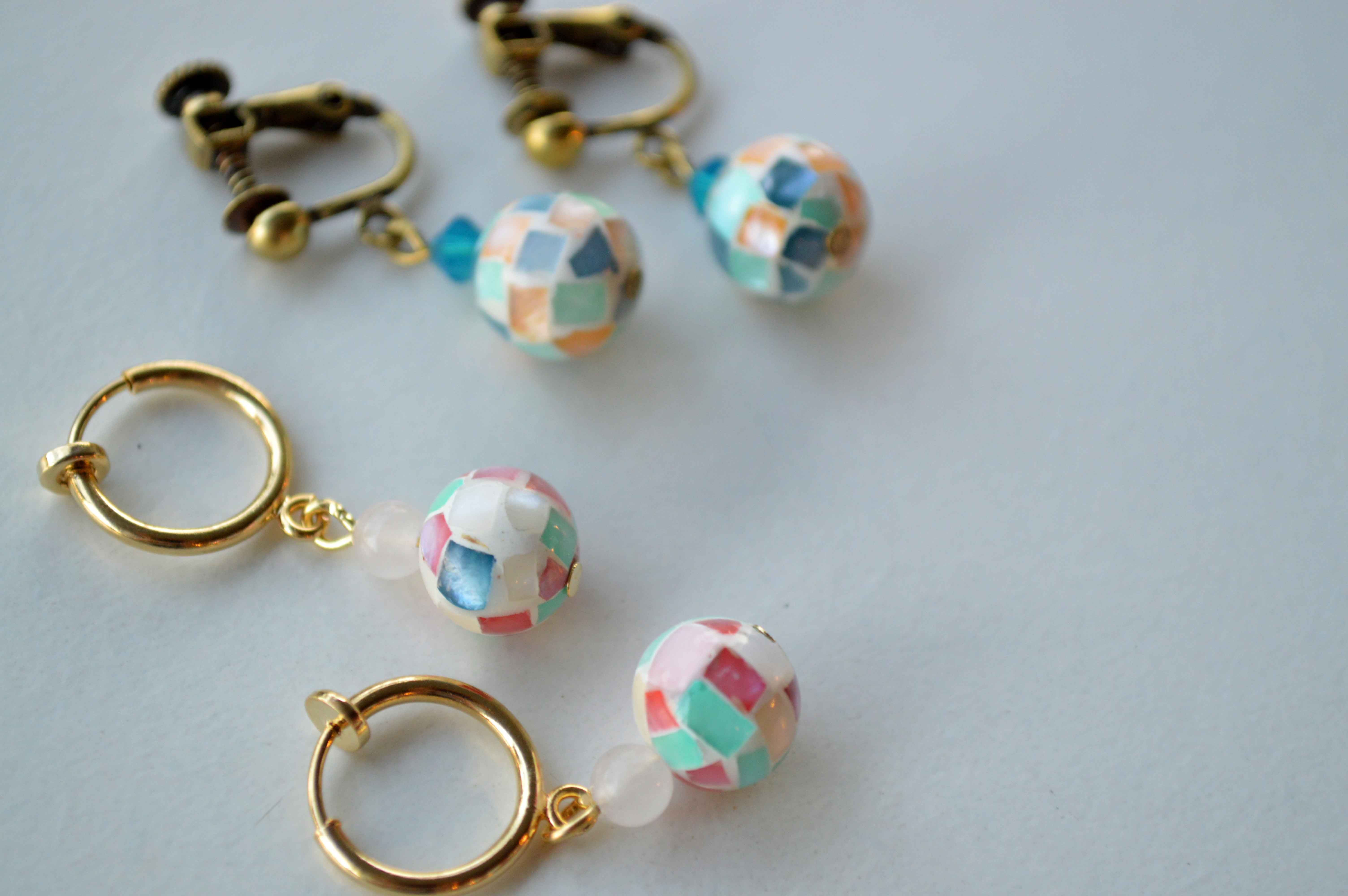 ノンホールピアスとイヤリング。ブルーorピンク。