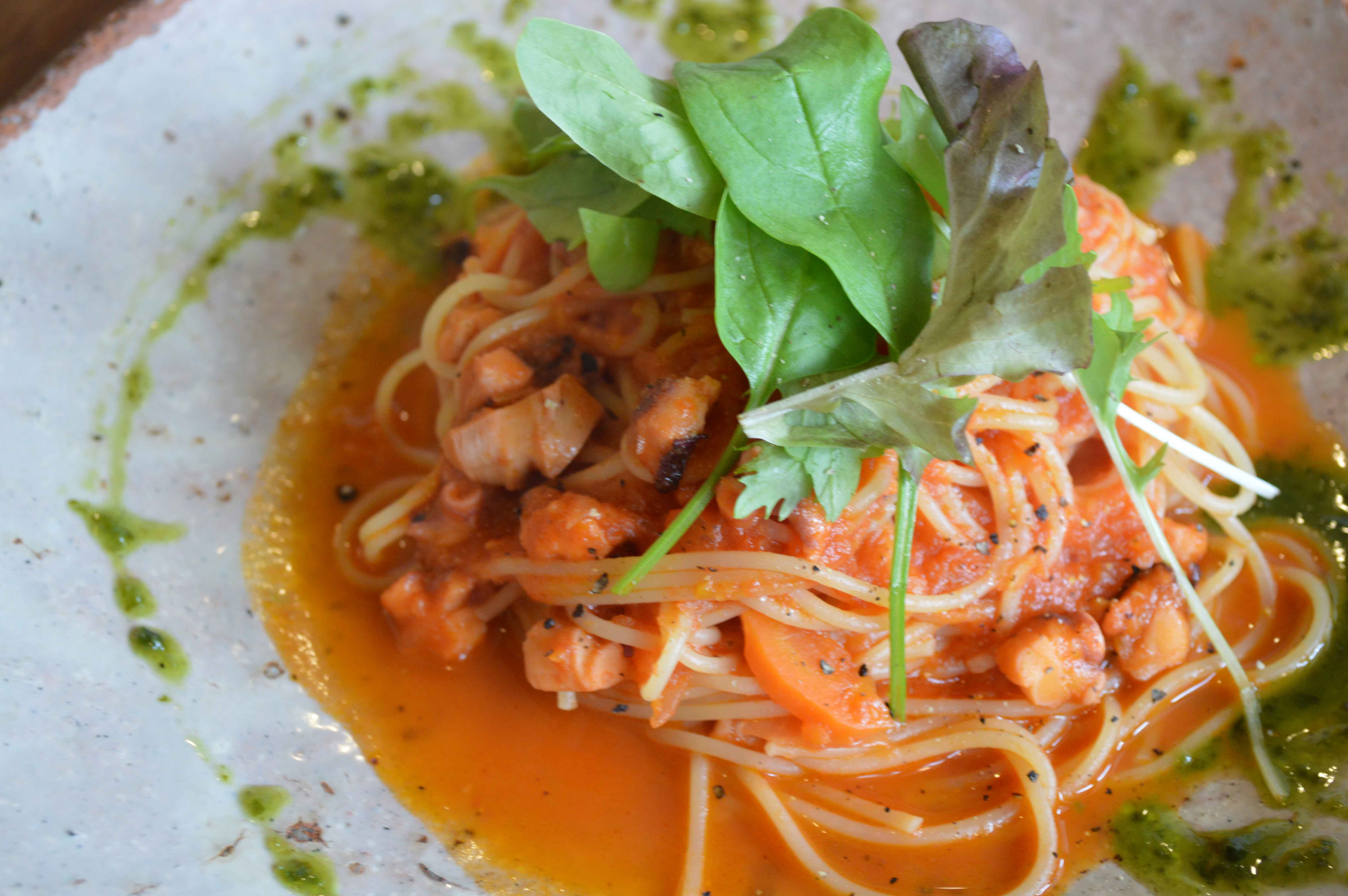 「タコのラグーソース バジルソース添え」です。