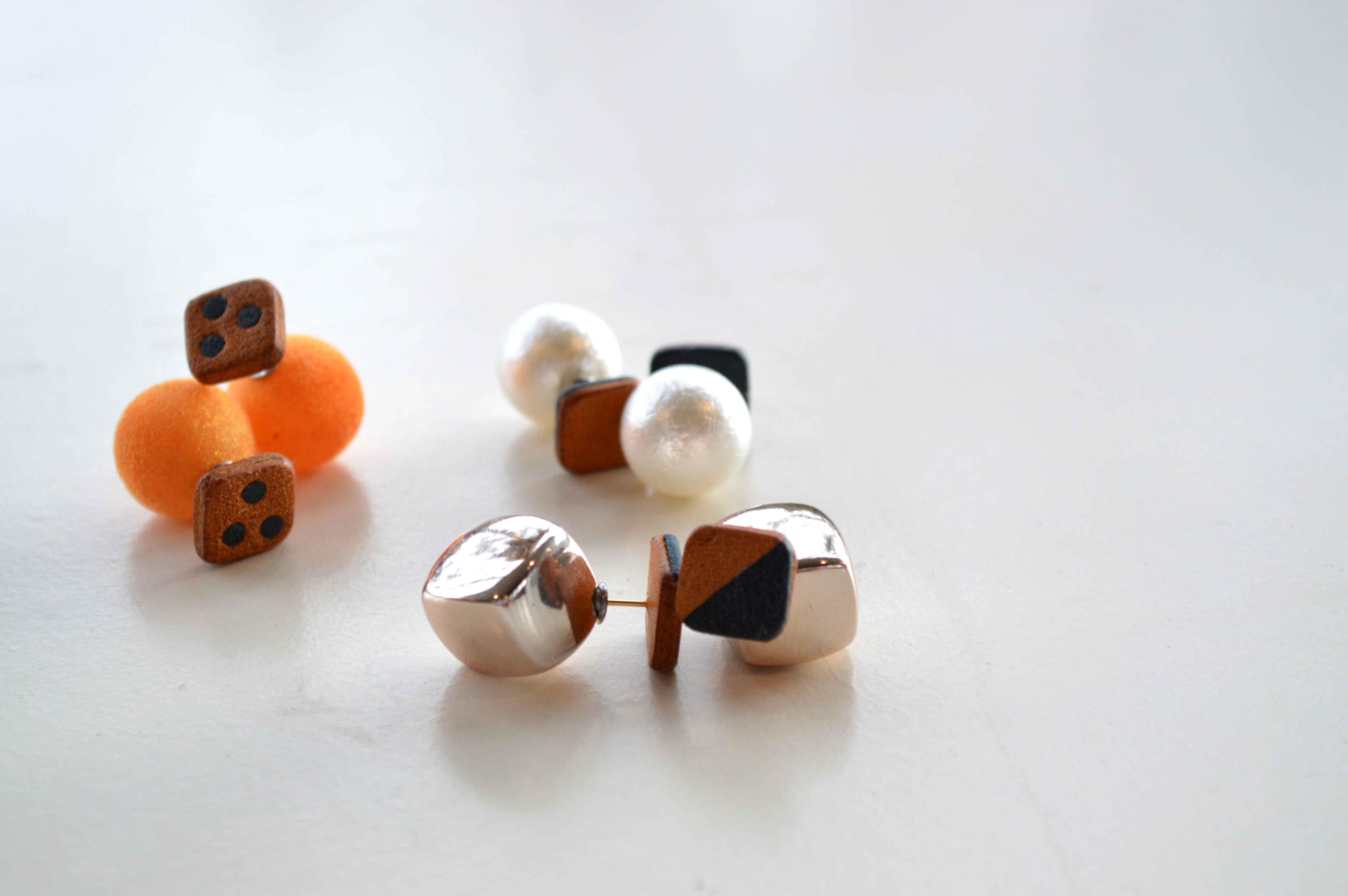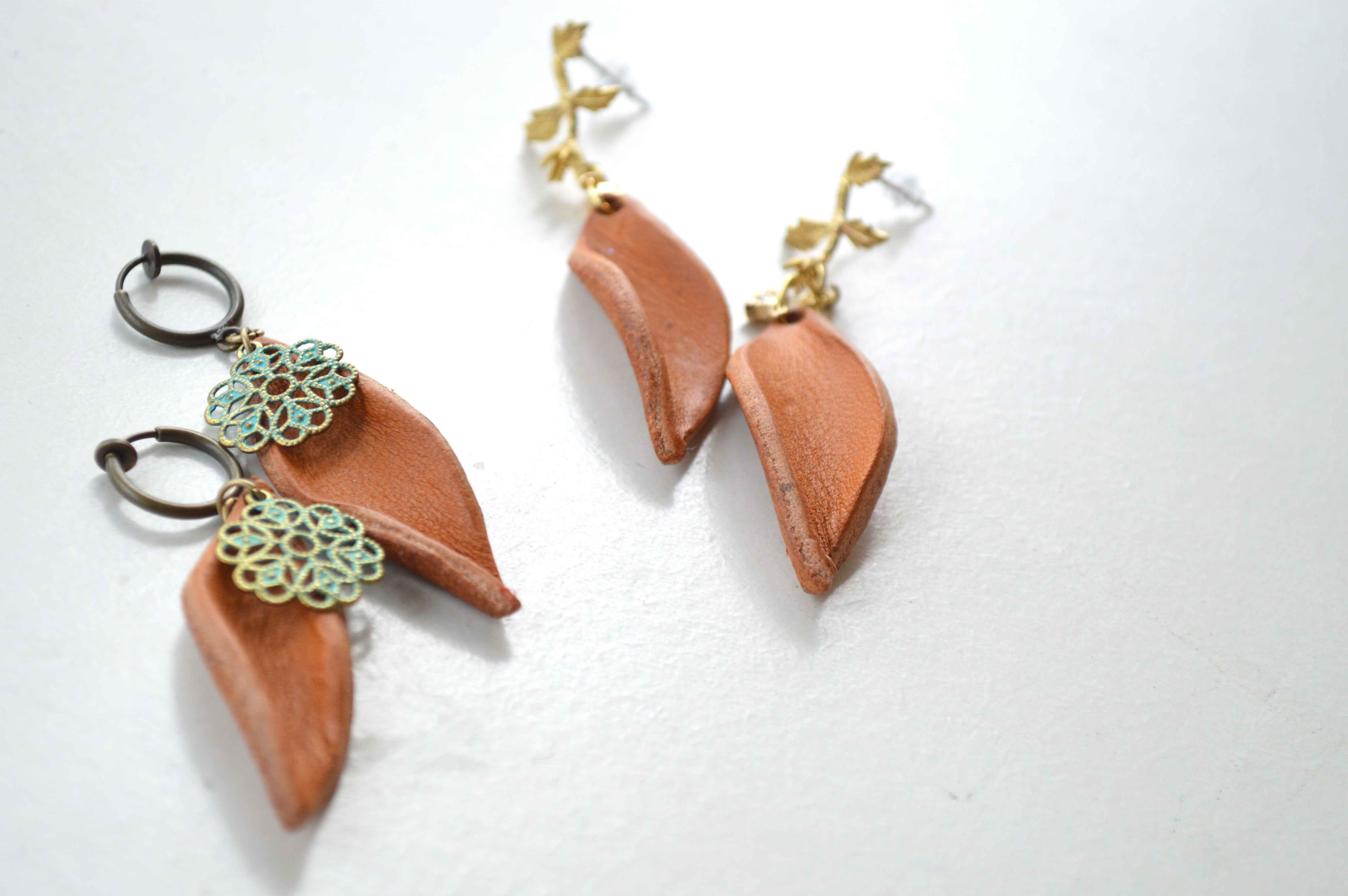レザーを使った、まるでリーフのようなピアスも。