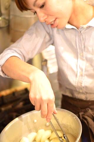 使用する梨も1ホールに7個ほどと、失敗しないように緊張感を持って作ります。